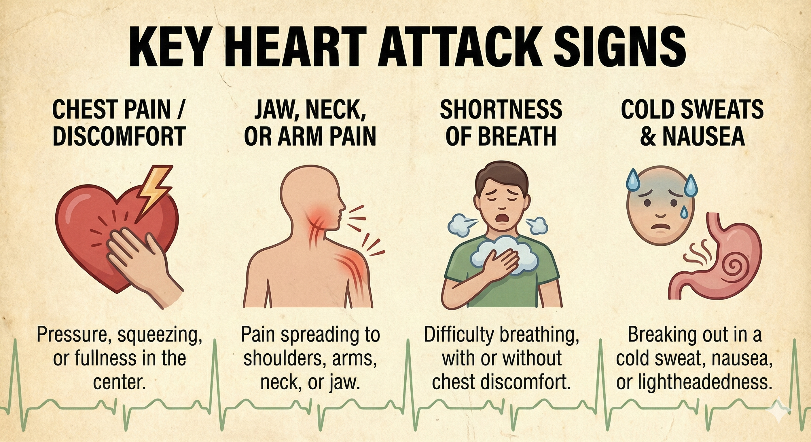 Not everyone has textbook chest pain. Women, older adults, and people with diabetes may have more subtle symptoms like fatigue, shortness of breath, indigestion‑like discomfort, or back or jaw pain without obvious chest pressure.